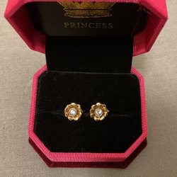 Guldörhängen 18 k med vita stenar.