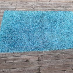 Blå fint ryamatta i ull. Mått 90 x 162 cm