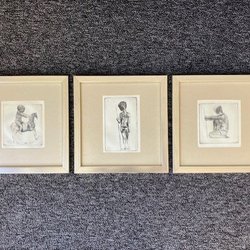 3 x tavlor Louis Bastin. Etsning. Grafiskt blad.
