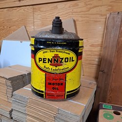 Gammal oljeburk Pennzoil 5 gallon.