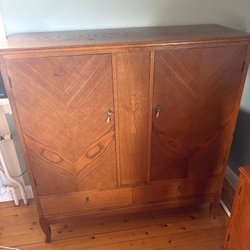 Vintage träskåp/linneskåp i ek med hyllor och lådor