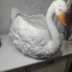 Stor !! Vit Svan Keramik ytterfoder Prydnadsföremål