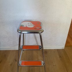Retro stegpall / kökspall i krom med Mumin motiv