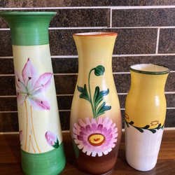 Tre vaser med blommor. Troligen tidigt 1900tal