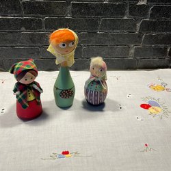 VINTAGE påskgummi trä hemslöjd, påskduk