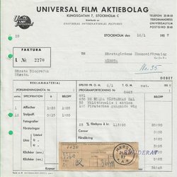 Märsta Postal dokumentation enligt bild Faktura Universal Film AB