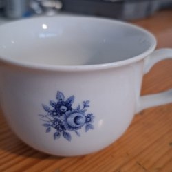 Vit kopp med blått blommönster
