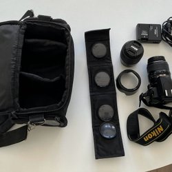 Nikon D40 systemkamera med två objektiv och tillbehör