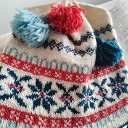 Stickad mössa och halsduk med tofsar