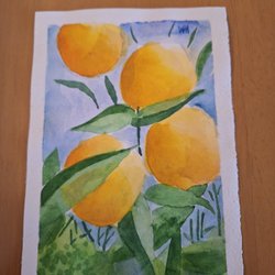 WENCHE HÖIDAL - "CITRONER" - AKVARELL PÅ PAPPER.