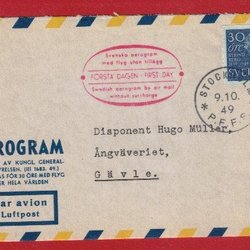 386 STOCKHOLM P.F.F.S. - SVERIGE AEROGRAM FIRST DAY 1949