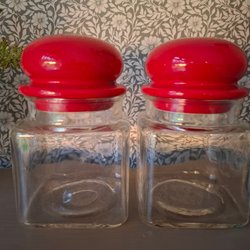 Två Burkar med Röda Lock