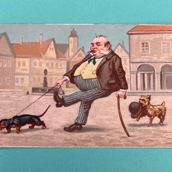 Vykort med man och hundar tax