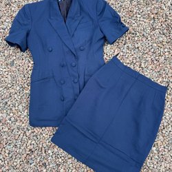 Marinblå dräkt med kavaj och kjol
