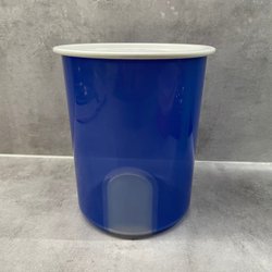 Tupperware rund förvaringsburk, blå med vitt lock, "BINGO"