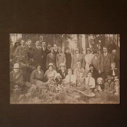 STORT VÄLKLÄTT SÄLLSKAP FIKAR. - PRIVATTAGET FOTOVYKORT