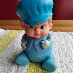 Vintage Gummi Leksaks Docka med pipljud - Made in Hong Kong
