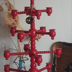 Kulljusstake Julljusstake Retro röd 17-armad, 74 cm hög!
