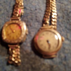 Två antika damklockor i guldpläterat utförande