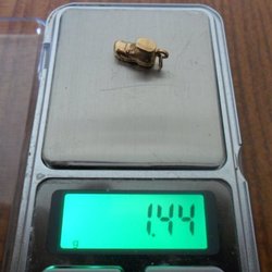 guld hänge i form av en sko . 18 k . 1,44 gr