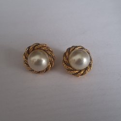 Vackra guldplätering clips örhänge med vit vaxade glaspärla