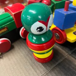 3 st Brio träleksak med dragvagn, lok, uggla.