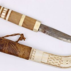 SKEDAR, 4 st, HALSDUKSRING samt NIPPERASK, samehantverk / duodj