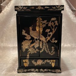 Lackskåp med pärlemorinläggningar