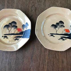 Två retro gamla assietter med Kinamotiv