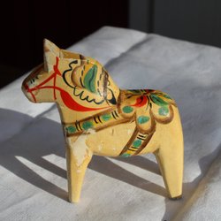 Dalahäst gul/vit 1900-talets mitt