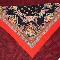 Stor röd sjal Paisley mönster blommor folkdräkt folklore
