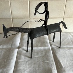 Bordslampa eller vägglampa i smide med orange glaskupa