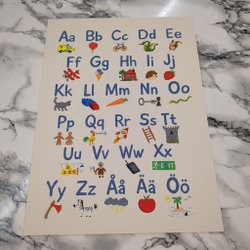 Affisch med alfabetet och siffror