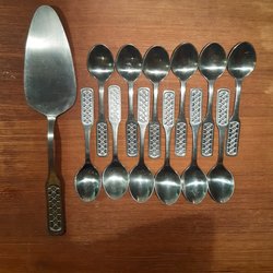 Bestick Hjärteblom 12 st Te / Kaffeskedar o 1 Tårtspade Rostfritt Stål Retro