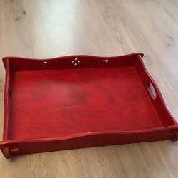 Röd bricka träbricka Serveringsbricka trä retro vintage