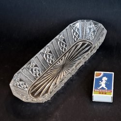 Fint anjovisfat i nysilver och med glasinsats i pressglas