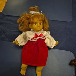 Docka med röd klänning
