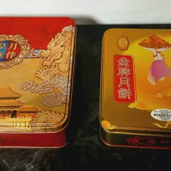 Asiatiska plåtburkar 2 st kakburkar