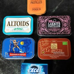 Burk Set 7 olika godis chocklad metal förpackningar