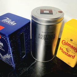 3st plåtburkar Tilda, Olof Viktors, Colman's Burk