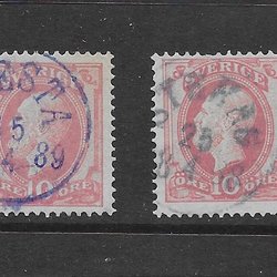 Nr45 med färgade stämplar GNESTA 15.4.89, STEHAG 25.4.88