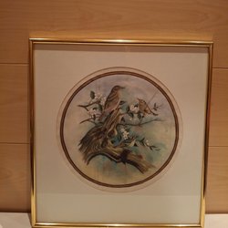 L.Johnson Oljemålning på duk med fåglar