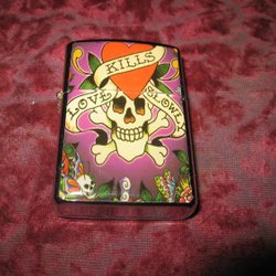 TÄNDARE - BENSIN DÖDSKALLE MED TEXTEN LOVE KILLS SLOWLY