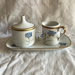 Hackefors- Blåklint- Sockerskål, gräddkanna och liten bricka