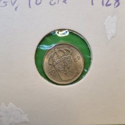 Gustav V 10 Öre 1928, utmärkt kvalitet, 01. Patina. Lågt utrop.