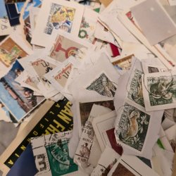 Gamla frimärken och vykort mm