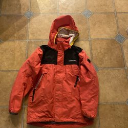 Röd, svart vinter overall