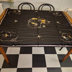 Vintage handbroderad sidenduk med mönster, 125 x 103 cm