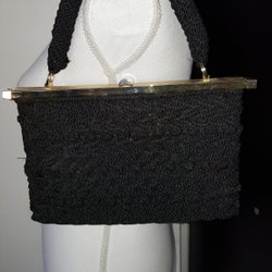 Vintage svart virkad handväska