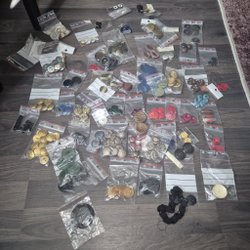Parti med tygstycken, pärlor/paljetter för sömnad